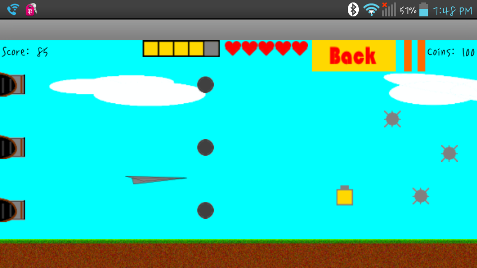 This is a semi-platformer game where you control a plane that flies through a variety of objects. You move the plane up and down to avoid objects and collect gas to stay alive. You have 5 lives and different objects cause different amounts of damage. While you are playing, you main objective is to collect as many coins as possible to unlock boosters and plane colors.