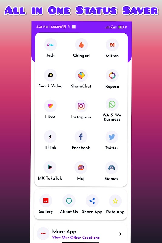 सभी सोशल मीडिया, व्हाट्सएप, फेसबुक, आईजी, आदि पर स्टेटस और वीडियो डाउनलोड करें और सेव करें