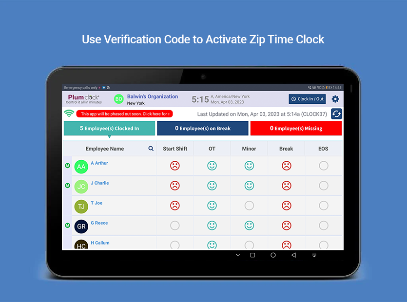 ज़िप क्लॉक टाइम क्लॉक कर्मचारियों को उनके समय के प्रति जवाबदेह बनाए रखने का सबसे आसान तरीका है। एक सहज घड़ी डैशबोर्ड आपको अपने सभी कर्मचारियों के कार्य शेड्यूल की वास्तविक समय स्थिति देखने की अनुमति देता है। और वास्तविक समय अलर्ट प्रबंधकों, पर्यवेक्षकों और कर्मचारियों को श्रम कानून का उल्लंघन होने से पहले संकेत देते हैं, जिससे उन्हें उल्लंघन के परिणामस्वरूप होने वाले अप्रिय दंडों से बचने के लिए पूर्वव्यापी कार्रवाई करने की अनुमति मिलती है। अपने एंड्रॉइड टैबलेट पर ऐप डाउनलोड करें और आज ही कर्मचारी समय को ट्रैक करना शुरू करें!