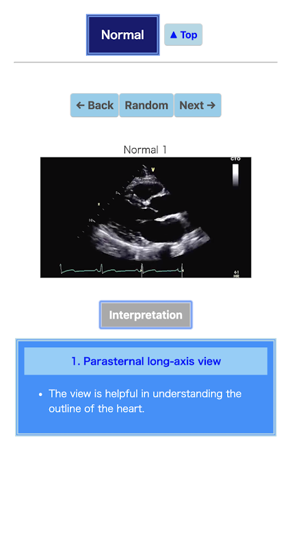 Echocardiography says, "Seeing is believing." This app is designed to display the beauty of echocardiography. More than 100 cases were selected from tens of thousands of echocardiographic examinations. All data are based on weekly echocardiographic conferences at Matsushita Memorial Hospital.