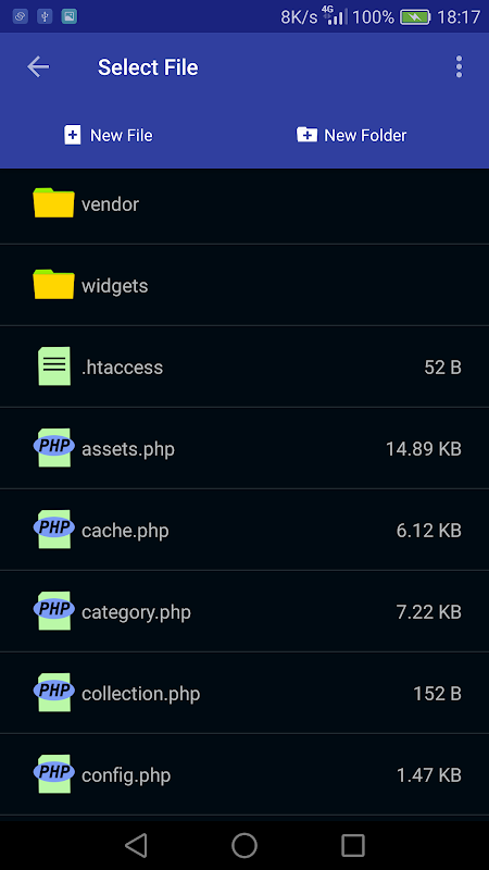 अंतर्निहित PHP और SQLite के साथ मोबाइल संपादक।