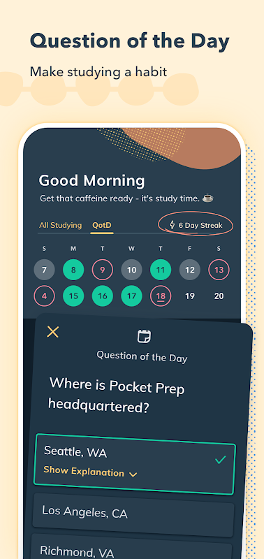 "पॉकेट प्रेप आपको न केवल पेज नंबर देता है, बल्कि उत्तर का विस्तृत विवरण भी देता है। मैं इस ऐप के बिना पास नहीं हो सकता था। पॉकेट प्रेप के प्रश्न वास्तविक परीक्षा से कहीं अधिक कठिन हैं, इसलिए मैं बहुत तैयार होकर आया था।" -एलेक्स अनग