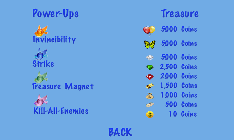 jumps around collecting gold coins, diamonds, rubies, emeralds and much more throughout the game while trying to avoid a horde of monsters and obstacles. Find different colored power-up birds to help gather more loot - The orange bird makes PogoBaby invincible! Just tap the screen to make