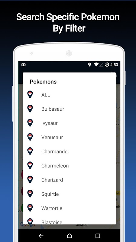 Pokemap Map for Pokemon app is extremely simple. You can view all nearby Pokemon shared by other users in your area.