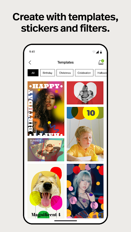नई शख्सियतों और वास्तविकताओं को गढ़ने के लिए स्टिकर, फिल्टर और टेक्स्ट जोड़ें।