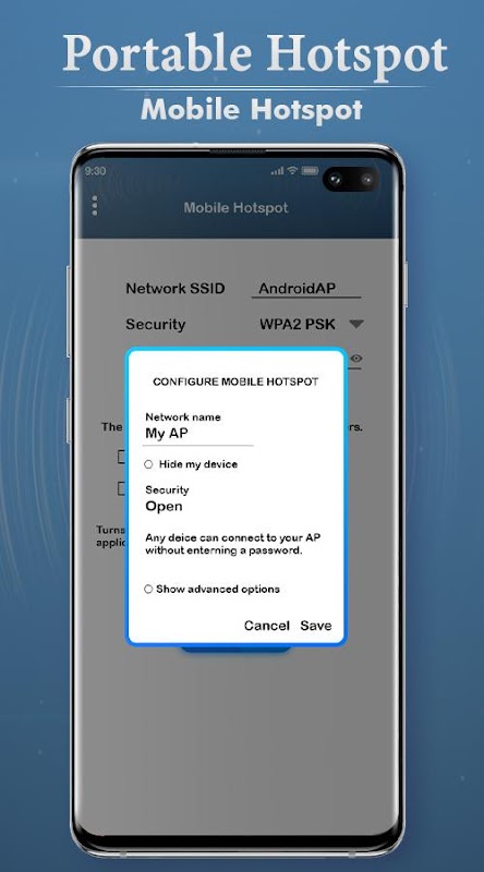 Portable Wifi Hotspot - Portable Hotspot app easily shares your mobile data connection with everyone you Free Wifi Hotspot application with lightweight data storage is able to broadcast wifi, share wifi from your phone in the high-speed, and secure and simple way. An easy way to manage wifi connections. This portable wifi mobile hotspot wifi connect app enables any android smart phone to search for open WiFi network and connect to it automatically. Save your data over free WiFi connect.