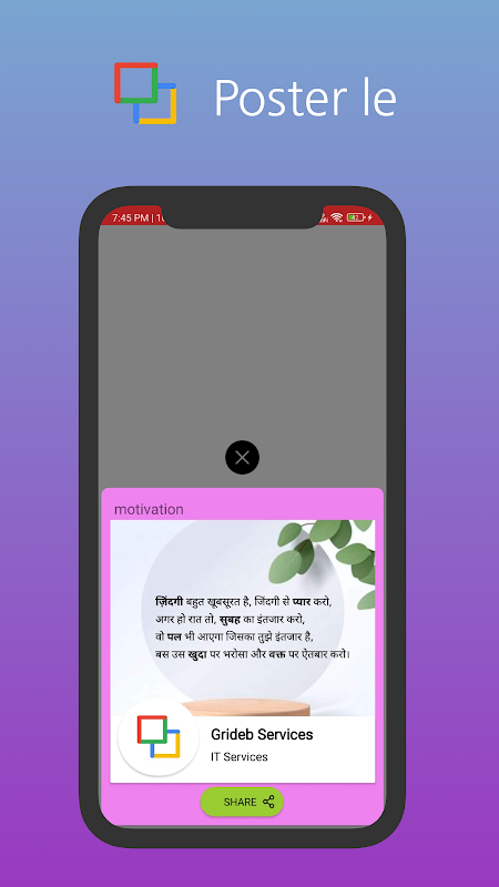 पोस्टर ले पर अपने लोगो और उद्धरणों के साथ सरल पोस्टर बनाएं और साझा करें!