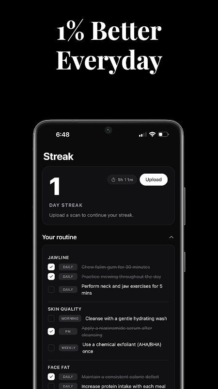अपने चेहरे में होने वाले बदलावों को प्रतिदिन ट्रैक करें। AI की मदद से अपनी चरम क्षमता की कल्पना करें।