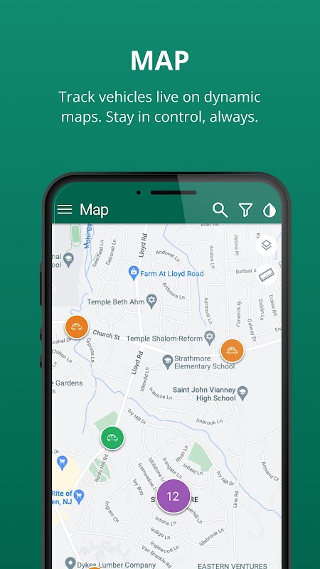 - वास्तविक समय में गतिशील मानचित्रों पर वाहनों को ट्रैक करें और ढूंढें