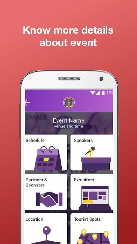 The events app will enable its member participating in an even hosted by the Association to browse through Speakers, Program, Exhibitors, Partners, Survey Questions, Q&A for the speakers, Location of the event, Tourist Spots around the event.