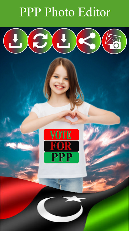 Edit your photo with Pakistan peoples party photo frame. The PPP photo frame renders extensive collection of incredible Pakistan peoples flag pictures along with Bhutto Pakistan images and Bhutto frames. The Pakistan peoples party frames also covers the Pakistan peoples party history and other PPP Pakistan Bhutto quotes. The PPP photo editor covers the wide range of party flag pictures and frames of PPP flags. Set your pictures with PPP flag face dp maker and enhance the enthusiasm for the peoples party. Support your party with PPP flags and Pakistan peoples party photo frames. Edit your pictures with the stunning Bhutto quotes and PPP party flags. PPP photo editor also renders the flexible user settings with foremost editing tools. Now edit the PPP Pakistan party flag picture just with Pakistan peoples party photo frame.
