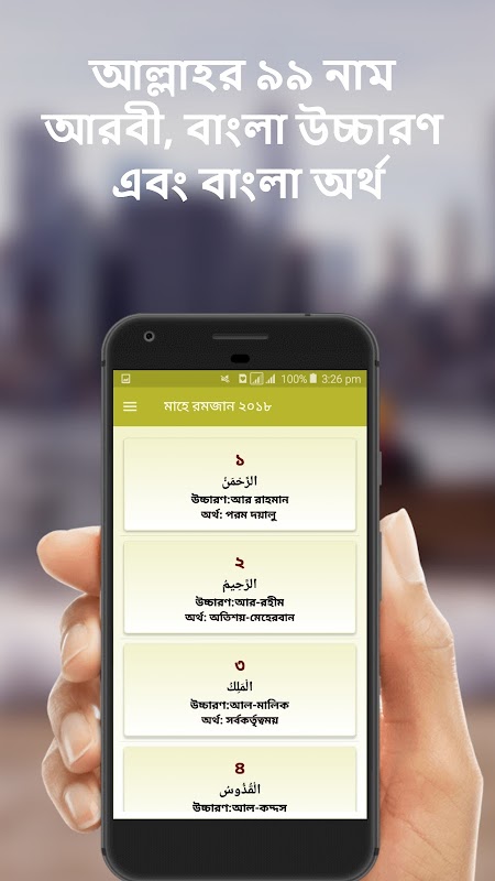 এছাড়া আপনি অ্যাপ্লিকেশনস টির মাধ্যমে জানতে পারবেন নামাজের প্রয়োজনীয় সূরা-সমুহের বাংলা অর্থসহ আরবী এবং বাংলা উচচারণ । এছাড়া আল্লাহর ৯৯ নাম এর আরবী, বাংলা উচ্চারণ এবং বাংলা অর্থ, এবং আয়াতুল কুরসী এর আরবী, বাংলা উচ্চারণ এবং বাংলা অর্থ ।