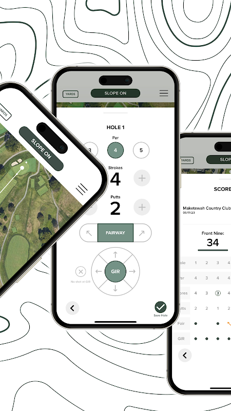 उच्च-रिज़ॉल्यूशन वाले गोल्फ़ कोर्स मानचित्र देखें जो सामने, केंद्र और पीछे की हरियाली और पाठ्यक्रम पर किसी भी बिंदु को मापने के लिए एक डिजिटल रेंजफाइंडर की दूरी दिखाते हैं। आप यहां से क्लब की दूरियां भी ट्रैक कर सकते हैं और स्कोर पोस्ट कर सकते हैं।