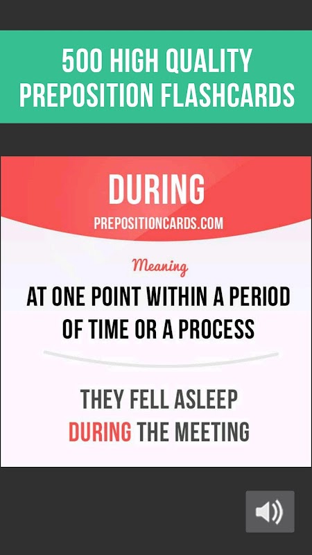 1. 'उपयोगी' फ़्लैशकार्ड आप एक पूर्वसर्ग, इसका अर्थ और एक उदाहरण दिखाता है।