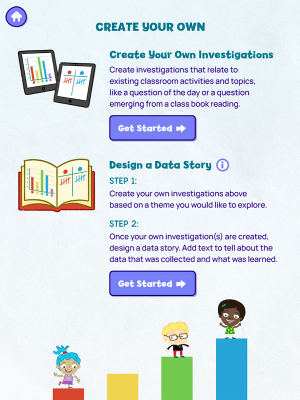 प्रीस्कूल डेटा टूलबॉक्स ऐप में ग्रेसी एंड फ्रेंड्स® के साथ डेटा एकत्र करें, ग्राफ़ बनाएं और अपने निष्कर्षों का विश्लेषण करें! पूर्वस्कूली-उपयुक्त शोध प्रश्नों के साथ हमारी छह जांचों में से एक चुनें, या अपनी खुद की जांच बनाएं और उन्हें डेटा कहानी में बदल दें। ये डेटा संग्रह और विश्लेषण गतिविधियाँ बच्चों को कम्प्यूटेशनल सोच और समस्या-समाधान, संचार और पूछताछ कौशल विकसित करते हुए सार्थक गणित में संलग्न होने में मदद करती हैं।