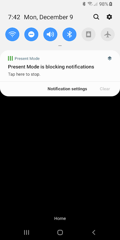 प्रेजेंट से बाहर निकलने के लिए, बस फोन के होम बटन को दबाएं। प्रेजेंट से बाहर निकलने पर, स्क्रीन खुलती है और सभी सूचनाएं वापस आ जाती हैं।