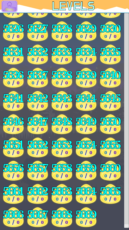 कहानी कुल 5669 स्तरों के साथ स्तरों में विभाजित है। खेल हमेशा अंतिम स्तर को याद रखता है जिसे खिलाड़ी ने खेला था, इसलिए खिलाड़ी हमेशा मुख्य स्क्रीन पर "प्ले" बटन दबाकर जारी रख सकता है। खिलाड़ी "स्तर" स्क्रीन में स्तर की संख्या का चयन करके अन्य वर्गों में जा सकता है। स्मृति को ताज़ा करने के लिए, खिलाड़ी खेल स्क्रीन के शीर्ष भाग में "बैक" के साथ वापस कूद सकता है, या "अगला" बटन के साथ अगले स्तर पर जा सकता है।