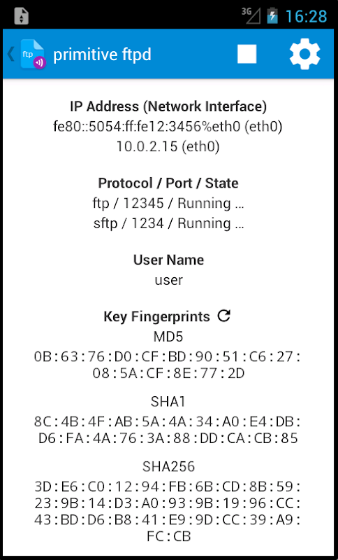एक साधारण FTP सर्वर। वाईफाई पर अन्य मशीनों के साथ फाइलों का आदान-प्रदान करने के लिए अनुमति देता है। कोई और अधिक यूएसबी केबल खोज। रूट अधिकार के बिना चलाता है। जब डिवाइस जूते शुरू नहीं किया है (लेकिन आप चाहें कर सकते हैं)। सर्वर चलाता है जब खुद पर नियंत्रण रखें। इसे चलाता है, जबकि यह (विन्यास) निरस्त करने के लिए लंबे समय से अपलोड और डाउनलोड से बचने के लिए स्टैंडबाई से बचाता है। स्थानांतरण SFTP के द्वारा एन्क्रिप्टेड किया जा सकता।