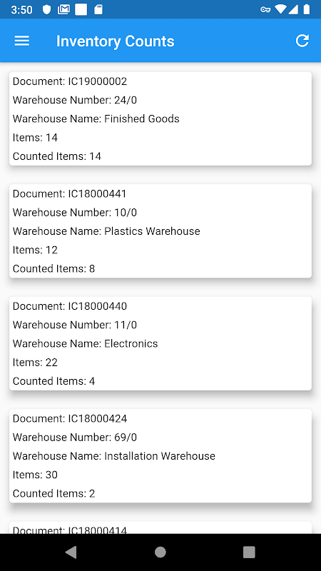 इन्वेंटरी ओडटा एपीआई का उपयोग करके प्राथमिकता ईआरपी आवेदन के लिए ऐप की गिनती करता है।
