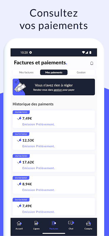 - पिछले 2 वर्षों के अपने चालान (क्लासिक और विस्तृत) डाउनलोड करें और पिछले 6 महीनों में उनके विकास को देखें