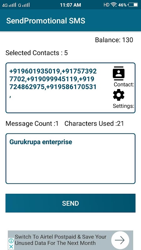 Pro SMS is small and useful application it enables anyone send sms messages with an account on psms.gurukrupaenterprise.com or any other web-api which provide bulk sms from web