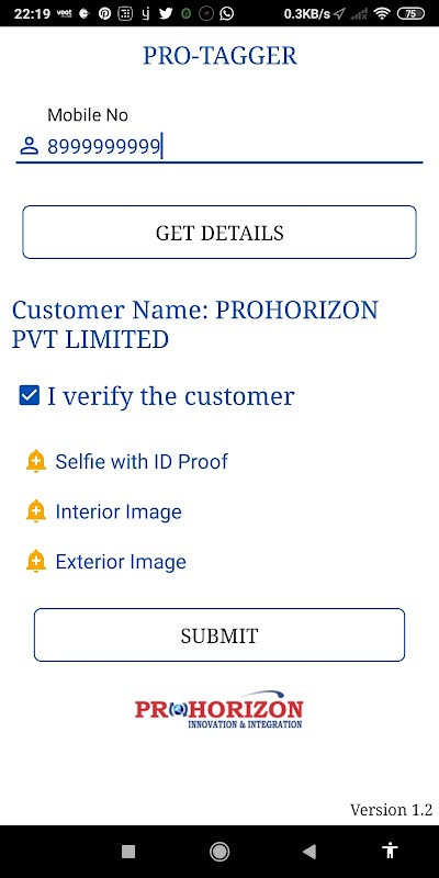 इस ऐप का उपयोग ग्राहक सत्यापन के लिए किया जाता है