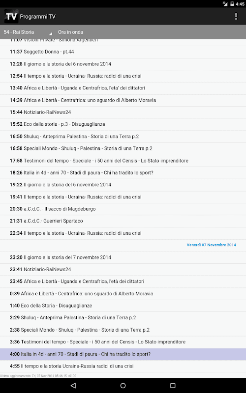 ध्यान दें: एप्लिकेशन केवल कार्यक्रमों की अनुसूची को प्रदर्शित करता है, स्ट्रीमिंग देखने पर समारोह नहीं है।