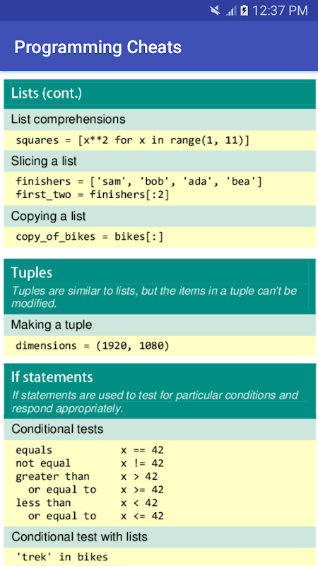 FREE Programming cheat sheets application for software engineers, networking administrators, web developers and computer science students.