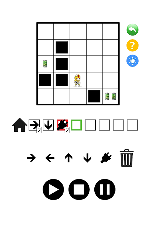 रोबोट सूचीबद्ध आंदोलनों के अनुसार आगे बढ़ेगा और बैटरी लेगा।