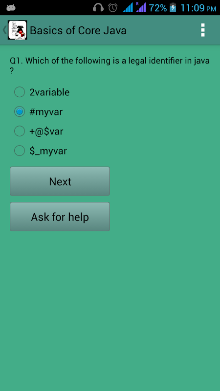 Questions have a very good standard. This app allows to to really test and challenge your java skills. If you think you are a java expert then this app is for you to show the world that you are an expert.
