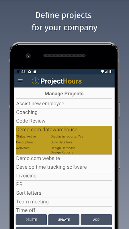 एसएमई के लिए समय ट्रैकिंग ऐप। परियोजनाओं को परिभाषित करें और घंटे ट्रैक करें!