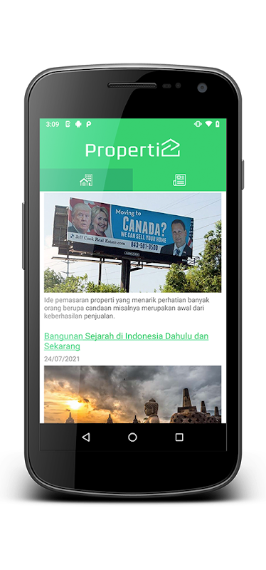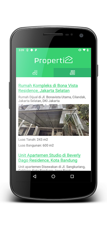 Rows of listings of houses, apartments, shop houses, and other properties in Indonesia. And also news and property information.