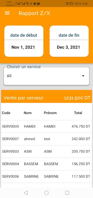 - वर्तमान आदेश विस्तृत: टेबल अधिभोग समय, कुल आदेश, उत्पादों।