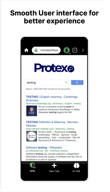 प्रोटेक्सो एक निजी, सुरक्षित ब्राउज़र है जिसमें बिल्ट-इन वीपीएन, ऐड ब्लॉकर और एआई सर्च है जो आपके ब्राउज़िंग को साफ़ और तेज़ बनाए रखता है।