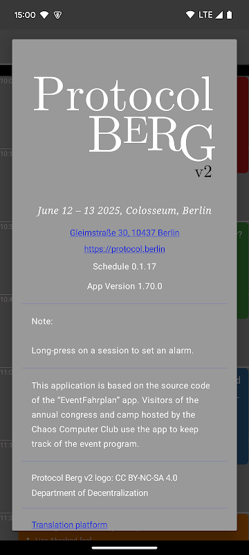 💡 सामग्री से संबंधित प्रश्नों का उत्तर केवल प्रोटोकॉल बर्ग सामग्री टीम द्वारा दिया जा सकता है। यह ऐप केवल कॉन्फ़्रेंस शेड्यूल का उपभोग करने और उसे निजीकृत करने का एक तरीका प्रदान करता है।