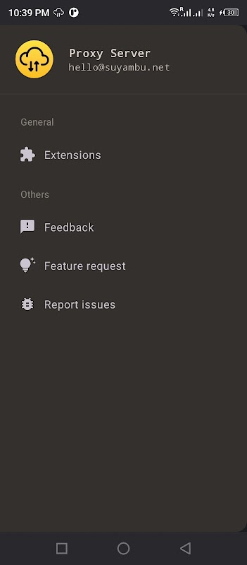 यदि उपयोग के दौरान आपको कोई भ्रम है, तो आप समर्थन के लिए डेवलपर से ईमेल या टेलीग्राम से संपर्क कर सकते हैं। कृपया ध्यान दें कि यह ऐप उन उन्नत उपयोगकर्ताओं के लिए है, जिन्हें नेटवर्किंग और प्रॉक्सी सर्वर का ज्ञान है।