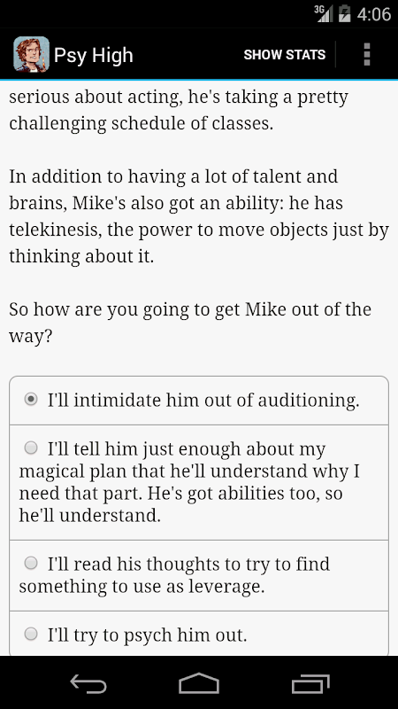 "साइ हाई" रेबेका स्लिट द्वारा लिखित एक इंटरैक्टिव किशोर अलौकिक रहस्य उपन्यास है, जहाँ आपकी पसंद कहानी को नियंत्रित करती है। यह पूरी तरह से टेक्स्ट-आधारित है - बिना ग्राफिक्स या ध्वनि प्रभाव के - और आपकी कल्पना की विशाल, अजेय शक्ति द्वारा संचालित है।