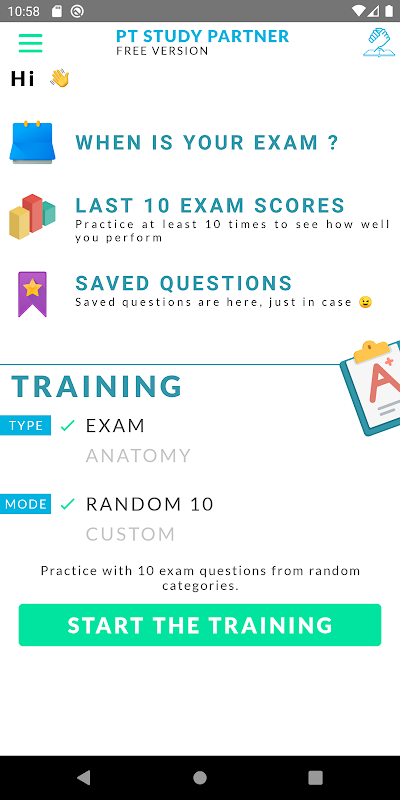 परीक्षा के प्रश्नों का एक बड़ा हिस्सा शारीरिक ज्ञान की आवश्यकता है। आपको सबसे अच्छे तरीके से तैयार करने के लिए, आपका स्टडी पार्टनर आपको कई एनाटॉमी क्विज़ प्रदान करता है। प्रत्येक शरीर रचना प्रश्न को निम्नलिखित श्रेणियों में से एक में वर्गीकृत किया गया है: MUSCULOSKELETAL, CARDIOVASCULARRESPIRATORY