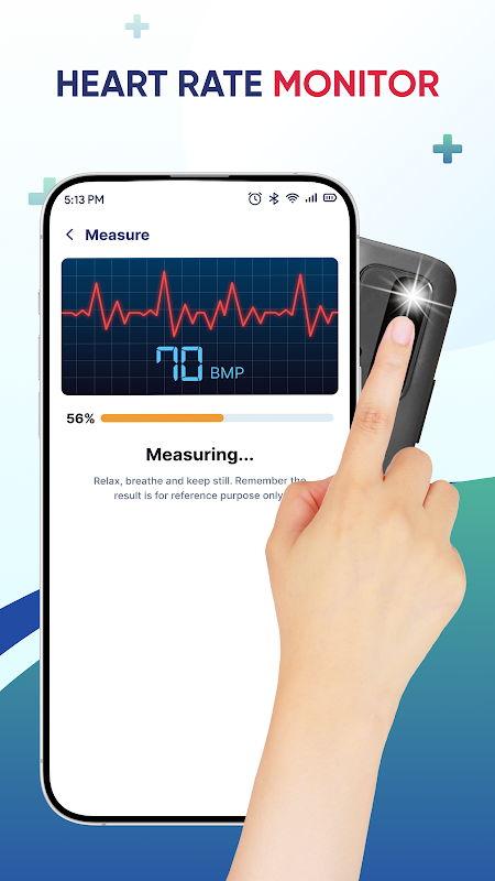 - हृदय गति मॉनिटर: सीधे अपने फोन के कैमरे का उपयोग करके अपनी हृदय गति को मापें। बस अपनी उंगली कैमरे पर रखें, और ऐप आपकी हृदय गति की गणना करेगा और तुरंत परिणाम प्रदर्शित करेगा।