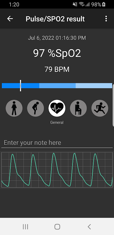 - ध्यान दें कि फोन में बिल्ट-इन सेंसर की सीमाएं हैं, इसलिए यह ऐप कभी भी मेडिकल-ग्रेड पल्स ऑक्सीमीटर की जगह नहीं लेगा।