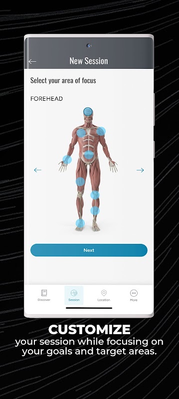 अपने लक्ष्यों और लक्षित क्षेत्रों पर ध्यान केंद्रित करते हुए अपने पल्सिंग सत्रों को अनुकूलित करें। एनाटॉमी चार्ट आपको पूर्ण-शरीर और केंद्रित पल्सिंग सत्रों की त्वरित शुरुआत करने में मदद करता है।
