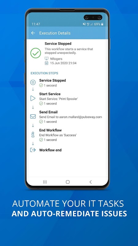 दूर से नजर रखने और किसी भी स्मार्टफोन या टैबलेट से सुरक्षित रूप से अपने आईटी प्रणालियों का प्रबंधन। Pulseway आप कहीं से भी अपने कंप्यूटर और अनुप्रयोगों का पूरा नियंत्रण किसी भी समय देता है।