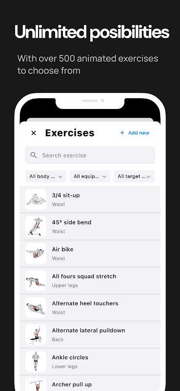 • व्यायाम लाइब्रेरी और निर्देश: स्पष्ट निर्देशों के साथ व्यायाम के विशाल डेटाबेस तक पहुंचें, उचित रूप सुनिश्चित करें और अधिकतम लाभ प्राप्त करें।