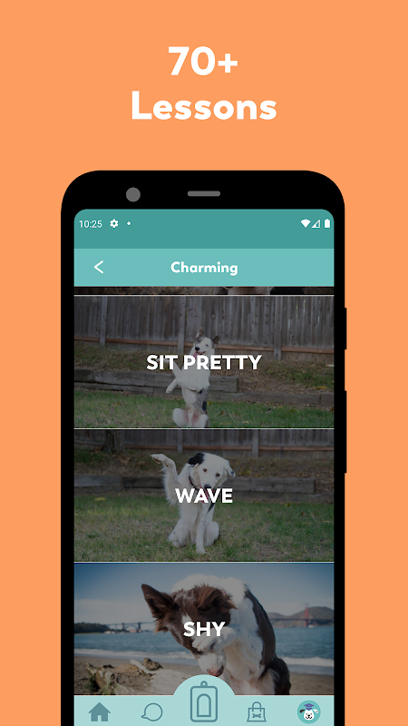 • बिल्ट-इन क्लिकर चलते-फिरते प्रशिक्षण को आसान बनाता है। सभी पाठ सकारात्मक सुदृढीकरण के साथ पढ़ाए जाते हैं!