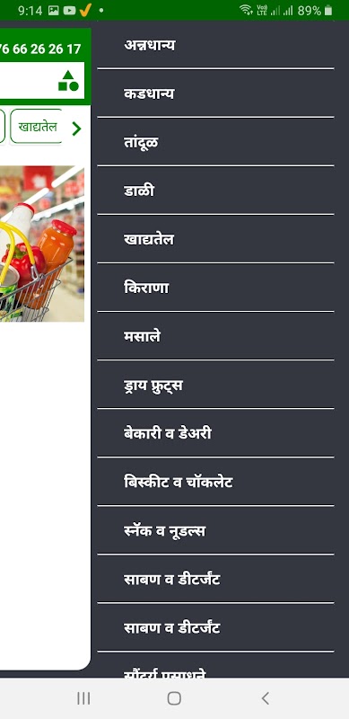 Grocery, Milk, Fruit and Vegetables and many more item are available for sale