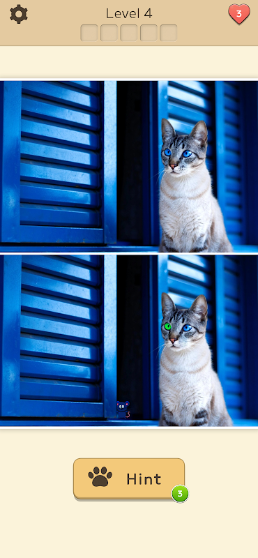 1. दो बिल्ली की तस्वीरों की तुलना करें और अंतरों पर टैप करें.