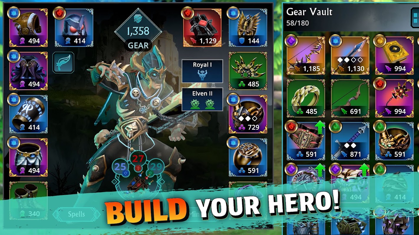 - अपने नायकों को अद्वितीय और शक्तिशाली मंत्रों से लैस करें और अपने लाभ के लिए तत्वों का उपयोग करें।