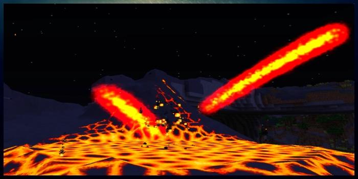 This mod introduces dynamic volcanos that erupt from the ground and slowly build up over time. Volcanos are environmental hazards: they eject destructive lava bombs and volcanic lava can flow for very long distances, filling caves, lakes, ravines, or even oceans. As lava flows it forms a smooth surface and eventually cools and hardens into basalt.