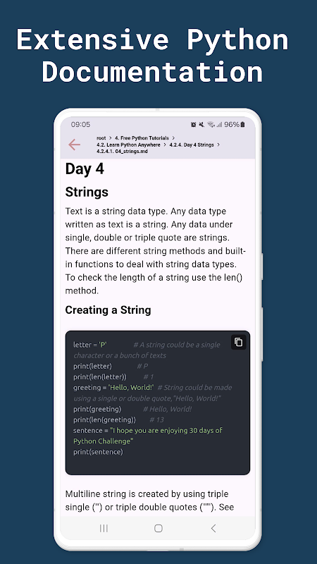 एंड्रॉइड के लिए सबसे शक्तिशाली पायथन कोडिंग ऐप में आपका स्वागत है! चाहे आप शुरुआती हों या अनुभवी डेवलपर, यह आईडीई आपको आसानी से सीखने, कोड करने और निर्माण करने में मदद करता है। यह PyCharm, VS Code, Pydroid और Pythonista की सर्वोत्तम सुविधाएँ लाता है, जो इसे Python उत्साही लोगों के लिए एक आवश्यक उपकरण बनाता है।