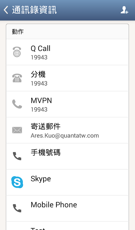 1. 公司通訊錄:搭配模糊搜尋,可快速查詢公司內各個人員資料,快速撥打或進行各項連絡。